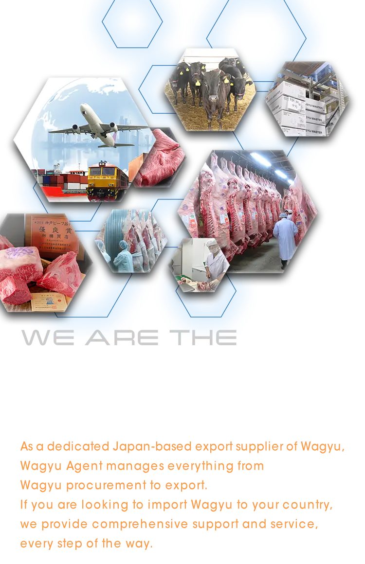 Wagyu Agent is a Japan-based trading company specializing in the supply of Wagyu. We hold auction purchase rights at three government-certified wholesale meat markets approved for meat exports and operate our in-house meat processing and packing facility. These auction purchase rights allow us to bid on carcasses—a privilege reserved for domestic meat wholesalers in Japan. Beyond procurement, we provide efficiently portioned, user-friendly cuts tailored to our clients’ needs. We can even dispatch our Meat Meisters to provide on-site meat-cutting instruction in your country. Our export specialists provide support in Japanese, English, and Chinese, and possess in-depth knowledge of local logistics, airports, and ports. With our extensive experience and proven track record in exporting, we offer fully integrated support from product procurement to overseas shipment.
